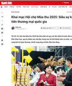 The images above compile key moments and information about the first Autumn Fair in 2025 , widely reported on many reputable media channels. Highlights include the solemn opening ceremony attended by delegates and guests, and articles in VnEconomy, AusCham, Nhan Dan, and Tuoi Tre introducing the scale, significance, and commercial and cultural importance of the event. Alongside these are the vibrant fairgrounds with their product displays, fresh flowers, and lively trading activities, reflecting the spirit of connection, innovation, and international cooperation that the 2025 Autumn Fair aims for.